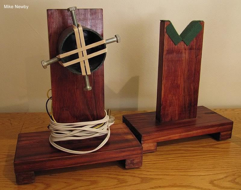 When making these seperate stands, make sure the "V" in them lines up 100% to the centre of you motor's shaft, of course...so the rod is level when you have in in the set-up and drying.